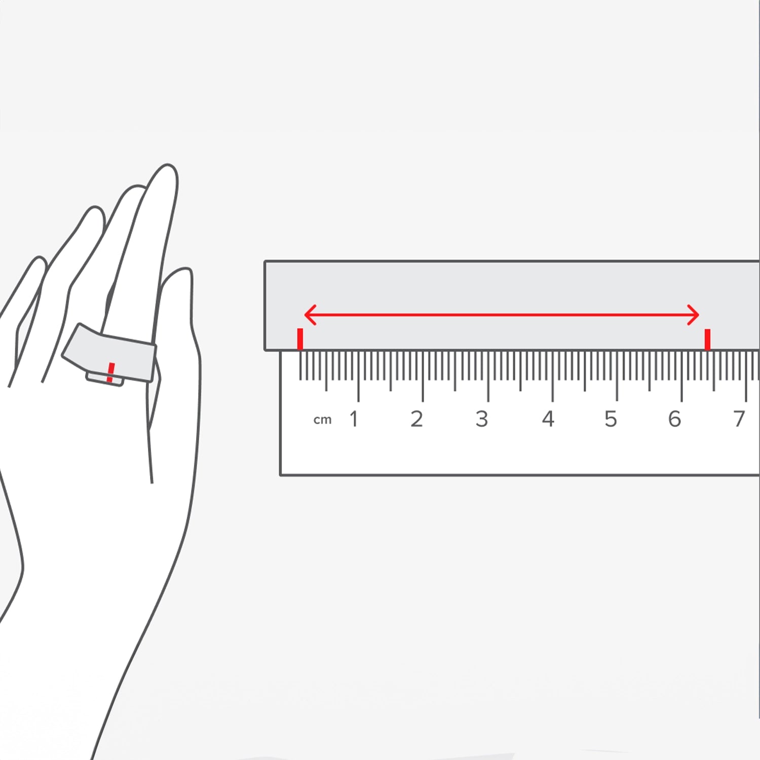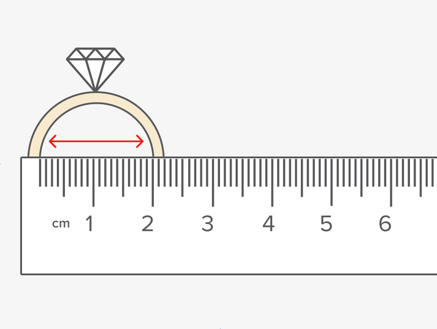 - Place your ring on top of a ruler and measure the inside of ring from inner edge to inner edge.